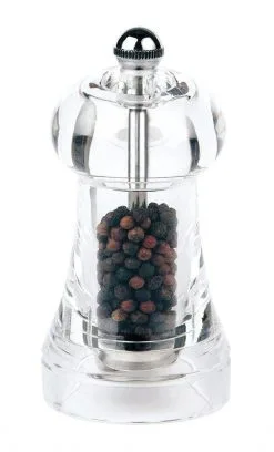 Das Pfeffer- & Salzmühlen-Set Menage Classic kommt stilvoll daher und macht bei Tisch eine gute Figur. Die Gewürzmühlen sind mit dem hochwertigen und langlebigen AdHoc Hochleistungs-Keramikmahlwerk ausgestattet und erlauben eine Mahlgradeinstellung von fein bis grob. Durch das Acrylglas werden die Aromen der Gewürze nicht verändert. Serviert werden die Mühlen in der stilvollen Menage aus Akazienholz mit Griff aus Edelstahl.