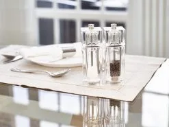 Eine einzigartige Salzmühle in modernem Look, die jedem Tisch Stil verleiht und gleichzeitig ein alltägliches Küchenwerkzeug bleibt. Stellen Sie den Mahlgrad von fein bis grob ein, indem Sie den Knopf am Deckel anziehen oder lösen. Die Cube Salzmühle verfügt über einen speziell für Salz entwickelten Diamantschliff-Keramikmechanismus.