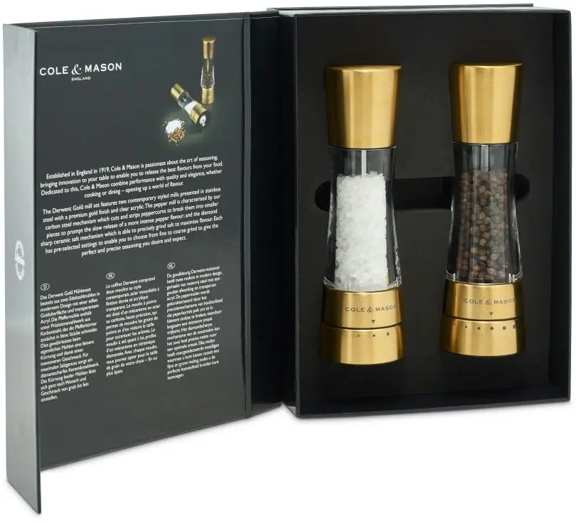 Cole & Mason Derwent Gold Salz- und Pfeffermühle Geschenkset, 19 cm