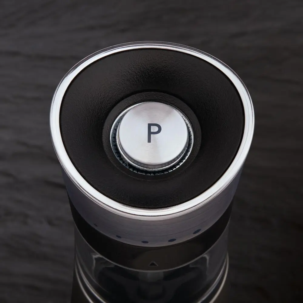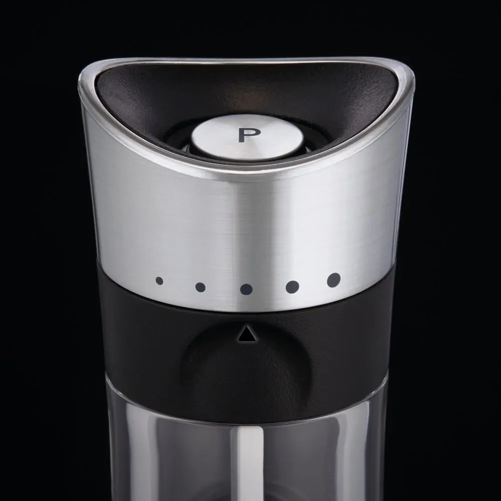 Die Umkehrmühle Horsham hält ihre Arbeitsfläche und den Tisch sauber. Das Mahlwerk befindet sich oben in der Mühle und kann mit einem Deckel verschlossen werden. Zum Mahlen muss die Mühle daher über Kopf gedreht werden. Diese Pfeffermühle verfügt über ein Mahlwerk aus Karbonstahl, mit 5 voreingestellten Mahlstufen. Schickes Design, volle Geschmacksentfaltung durch das Präzisionsmahlwerk und ein sauberer Tisch machen diese Mühle zu einem Muss für jede Küche. Wir empfehlen, in all unseren Mühlen hochwertige Pfefferkörner und grobes Meer- oder Steinsalz zu verwenden.