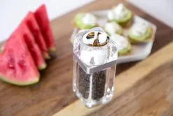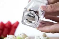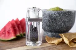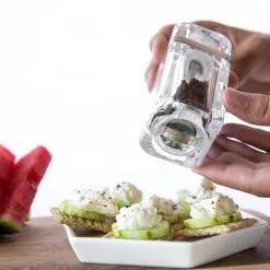 Die Kempton Kombi-Mühlen aus Acryl mit dezenten Edelstahl-Akzent kombiniert die Salz- und Pfeffermühle in einem. Die Kempton Kombi-Mühle verfügt über ein Präzisions-Mahlwerk aus Karbonstahl für Pfeffer und ein Keramik-Mahlwerk für Salz.