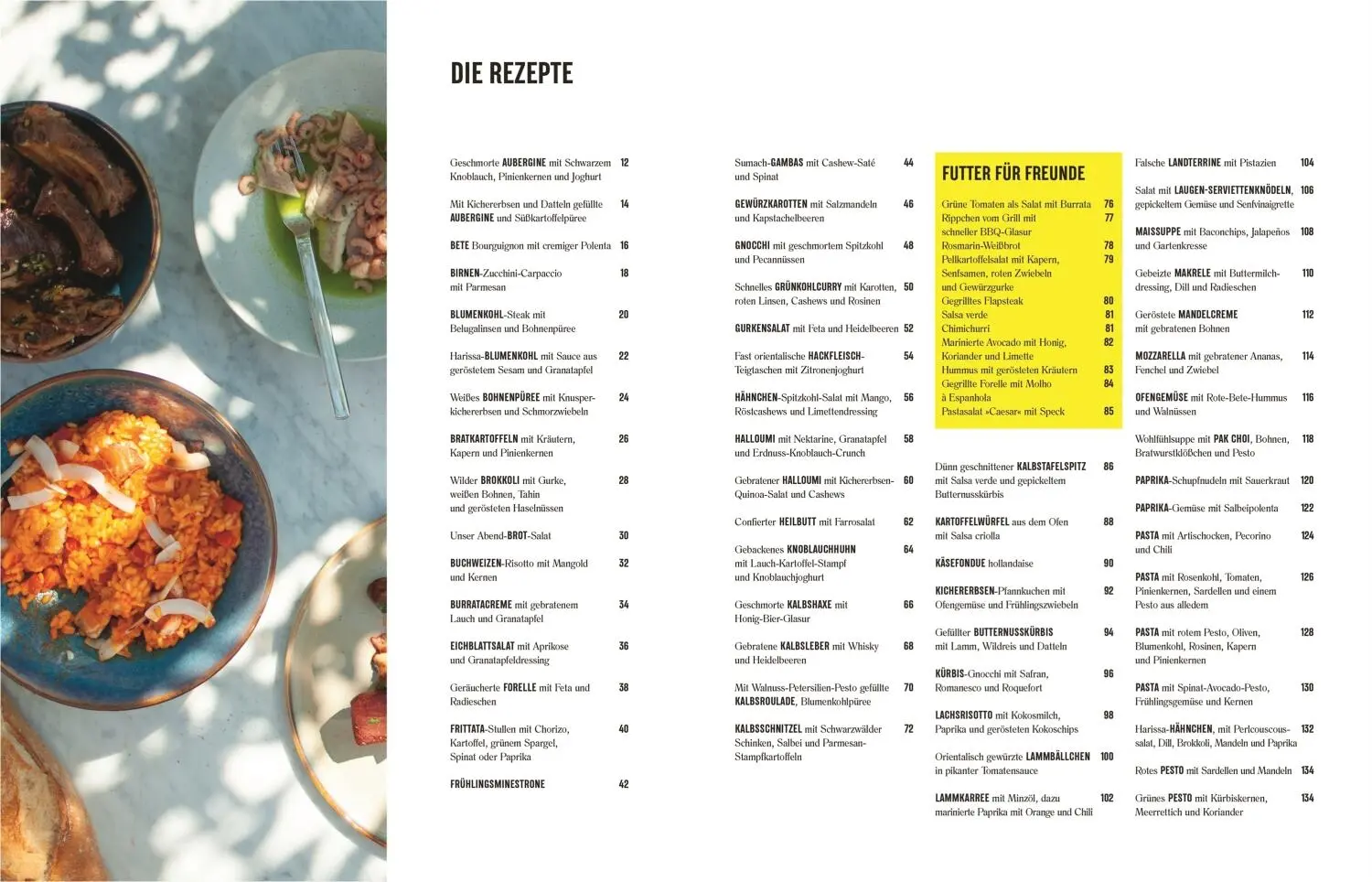 Das Kochbuch ist außerdem ein Kochbilderbuch, bei dem im Design der Fokus auf der Fotografie liegt.Das lässt einem einerseits sofort das Wasser im Mund zusammen laufen, andererseits sieht man auf einen Blick, wie überschaubar die Zutaten und wie einfach die Rezepte sind. Das perfekte Kochbuch für jeden Tag und für all diejenigen, die unkompliziert und trotzdem außergewöhnlich schlemmen wollen.
