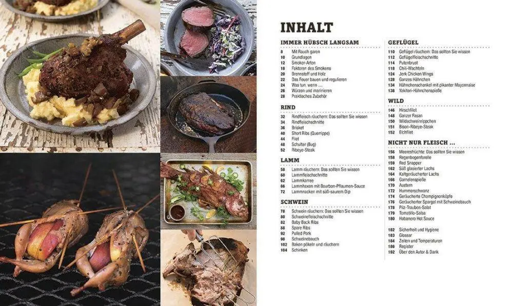 Fleischman Will: Smoke it. Geräte, Techniken, Rezepte. Das Räuchern von Fleisch ist eine Kunst für sich, die einer guten Mischung aus Geduld und Können bedarf. Nur wer das richtige Knowhow über den Vorgang des Räucherns besitzt, kommt in den einzigartigen Genuss der intensiven Geschmacksnoten, die sich durch das langsame Garen von Fleisch freisetzen.