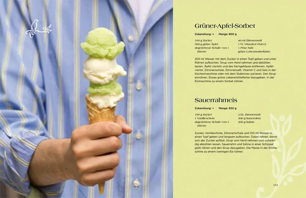 wieder persönliche Kommentare wecken die Vorfreude auf die Leckereien. Nach einfĂĽhrenden Tipps zur Eisherstellung fĂĽhrt Annik Wecker durch die unterschiedlichen Sorten: Eiscreme aus Milch und FrĂĽchten finden sich hier ebenso wieder wie Sorbets und Granitas, Eisklassiker und ungewöhnliche Eisideen sowie spezielle Varianten fĂĽr festliche Anlässe bis hin zu Eisgetränken. Egal ob Rum-Rosinen-Eis oder Mojito mit Mangoeis – hier kommen alle Eisfreunde auf ihre Kosten. Selbst wer keine Eismaschine besitzt, wird bei „Meine besten Eisrezepte“ fĂĽndig, da viele Rezepte auch ohne gelingen. Zur besseren Orientierung helfen die Angaben zum Zeitaufwand und Schwierigkeitsgrad. Der umfangreiche Anhang mit verschiedenen Techniken, Grundrezepten und Dekotipps rundet dieses ebenso schöne wie umfassende Buch ab.