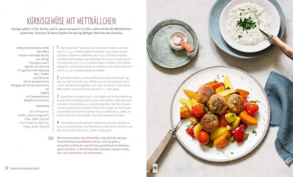 Der Römertopf feiert sein Comeback! In dem traditionellen Tontopf gelingen saftiger Rindfleischtopf, mediterran gefüllte Ofenpaprika und zarter Kabeljau im Schinkenmantel garantiert. Oder vielleicht doch lieber ein Aprikosen-Gratin? Alles kein Problem für den Römertopf: Nichts brennt an, nichts trocknet aus. Das Prinzip ist einfach erklärt, denn nach dem Wässern des Topfs erledigt der Ofen die Hauptarbeit. Und das Beste: Die Zutaten garen im eigenen Saft und behalten so ihre Aromen, Vitamine und Mineralstoffe. Und die kommen aus den unterschiedlichsten Ecken der Welt, denn der neue GU-Küchenratgeber reist mit klassischen Entenkeulen auf Apfel-Rotkohl, mediterranem Hähnchen oder asiatischem Lachs einmal um die Welt. Und sogar bis in die Backstuben. Mit No-Knead-Bread oder Mohnschnecken aus dem Römertopf überzeugen Sie auch am Frühstückstück. Mhm, duftet das herrlich aus dem Ofen!