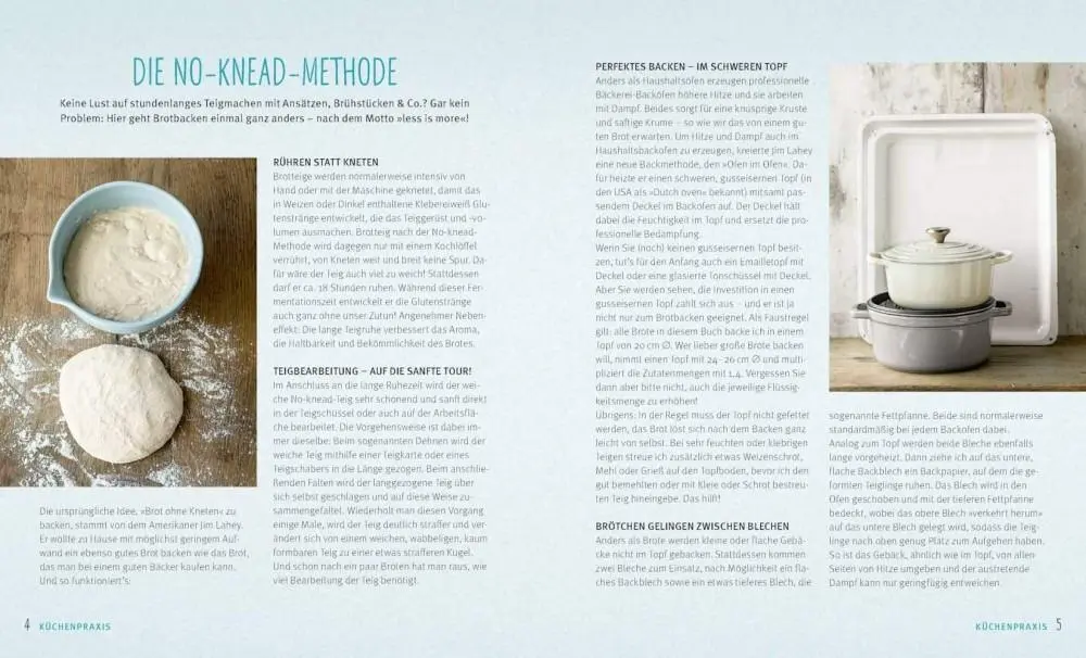 Seit 30.000 Jahren backen Menschen Brot. Da sollten wir wissen, was schmeckt und gut bekömmlich ist. Stattdessen führen moderne Turbo-Treibmittel zu Brotfrust und Unverträglichkeiten. Was tun? Selbst backen mit einem traditionellen Verfahren, das just in time sein Comeback feiert: Einfach Wasser, Mehl, Hefe und Salz vermischen. Das ist obersimpel, dauert 5 Minuten, und den Rest erledigt der Teig durch das langsame Gehen von alleine. Nach 20 Stunden Ruhe geht es – ganz ohne mühsames Kneten – ab in den Ofen. Heraus kommen Brote mit knuspriger Kruste und herrlich aromatischem Inneren. Das Prinzip ist so sicher, dass Sie damit die ganze Welt des Brotbackens zu sich nach Hause holen: mit verschiedenen Mehlsorten und mit vielen Zutaten wie Trockenfrüchten, Quinoa oder Hirse, kräftigen Gewürzen, Speck, Kürbis, Möhren oder Käse. Für all diese Brotsorten brauchen Sie nur einen Bräter mit Deckel und diese unwiderstehlichen Rezepte. Und auch Semmeln und Seelen, Pizza und Foccacia gelingen mit der no-knead-Methode!