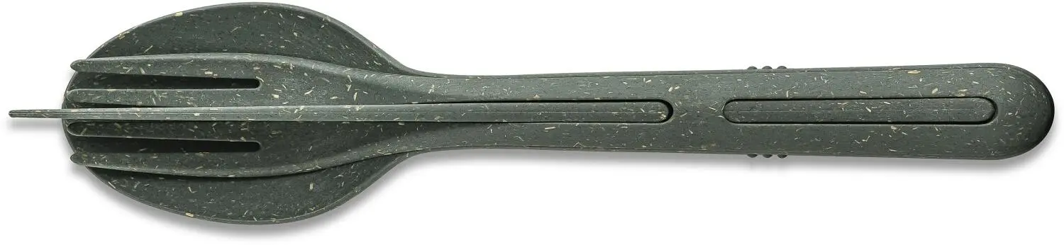 Messer, Gabel, Löffel – fertig. Endlich gibt es ein vernĂĽnftiges To-go-Besteck ohne Schnickschnack und in passabler Größe. Nie wieder das Essen zum Mund balancieren! Alle Teile lassen sich ohne groĂźes Rätselraten ineinanderstecken und auch wieder auseinander nehmen. Zum Lösen einfach das Messer an der Spitze anheben und nach unten herausziehen. Alle Besteckteile liegen gut in der Hand und passen mit ihrem Leichtgewicht wirklich in jede Tasche.