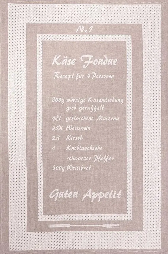 Küchentuch Fondue Nr. 1 von KULTSCHTOFF, taupe. Hochwertige Qualität aus der Schweiz. Ein Allzwecktuch im Landhausstil. Bereitet als textiles Kochbuch lange Freude!