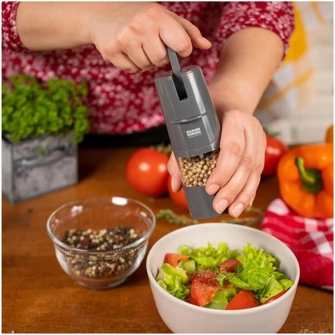2) Salz, Pfeffer oder Gewürze einfüllen.