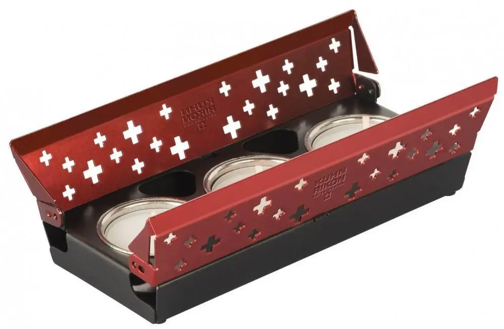 Kuhn Rikon Mini Racletteset bescheren Sie sich und Ihren Lieben gemütliche Genussstunden bei Kerzenschein. Der Rechaud bietet ausreichend Platz für drei Teelichter, die nach dem Entzünden den Raclette-Käse lange warm halten. Mit dem antihaftbeschichteten Kunststoff-Schaber lässt sich der geschmolzene Raclette-Käse leicht lösen.