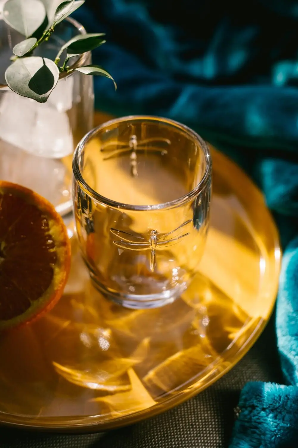 La Rochère Trinkglas Libellules, 6er-Set. Tassen aus gepresstem Glas, verziert mit Libellen. Die Gläser sind geeignet für die Spülmaschine.