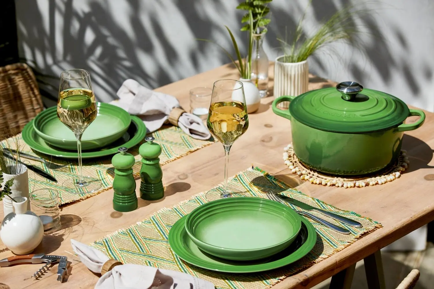 Le Creuset, Bamboo, ist ein satter, natürlicher Farbton, der gleichzeitig aufmunternd und beruhigend wirkt und seine beständige Schönheit in der Küche und auf dem Tisch ausstrahlt.