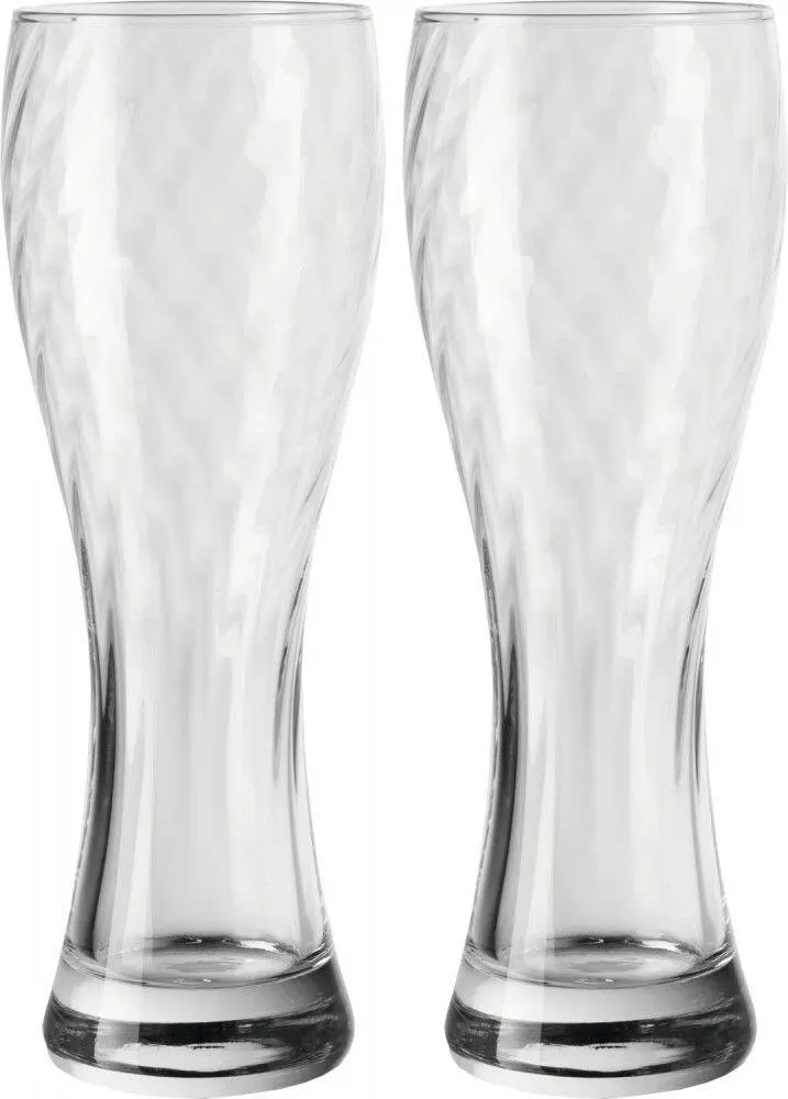 Leonardo Weizenbierglas Maxima optik, 2er Set. Dank des Reliefs an der AuĂenwand liegen die BierglĂ€ser gut in der Hand. Ein Glas fasst 0,5 l und hat damit die perfekte GröĂe fĂŒr ein entspanntes Weizen.