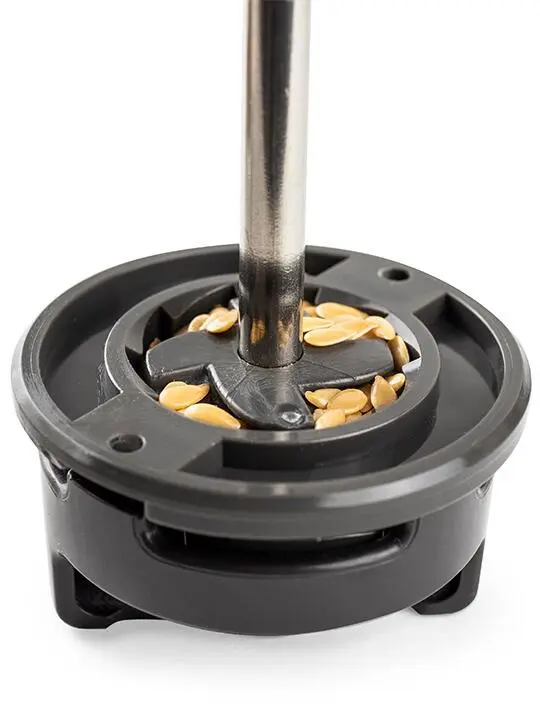 Um die Vorzüge der Samen genießen zu können, bietet Peugeot die manuelle Mühle Naka aus Holz an, deren patentiertes Mahlwerk speziell zum Mahlen von Lein- und Sesamsamen vorgesehen ist, da es sich an ihre Konsistenz und Härte anpasst. Das einfach und sehr schnell komplett ausbaubare Mahlwerk lässt sich gut reinigen. Diese Mühle mit abnehmbarer Kappe erlaubt ein schnelles Nachfüllen. Der beiliegende Dosierlöffel gestattet das Zumessen von 10 Gramm Leinsamen.
