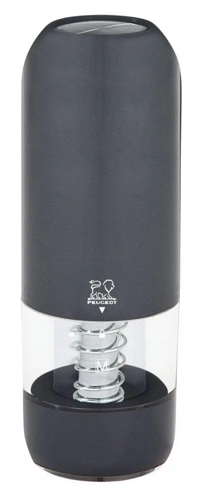 Peugeot Salzmühle Alaska elektrisch in quarzgrau. Knopfdruck mit nur einer Hand ermöglicht ein Mahlen mit hohem Komfort und der gewohnten Schärfe eines