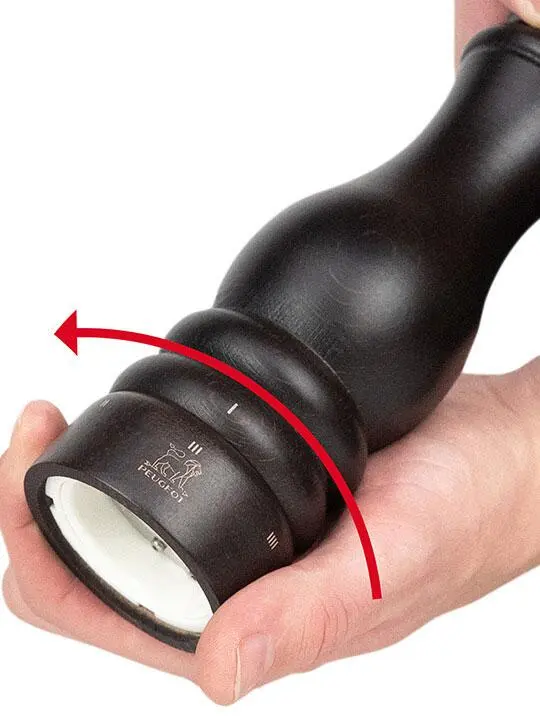 Das neue patentierte u´Select System von PEUGEOT ermöglicht eine leichte Einstellung des gewünschten Mahlgrades mit höchster Genauigkeit. Es genügt, den Edelstahlring am Fuß der PEUGEOT Mühle zu drehen und eine der 6 Positionen auszuwählen.