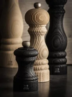 Der Körper der Mühlen wird anschließend durch einen ökologischen Lack pflanzlichen Ursprungs aus Leinöl und Carnaubawachs geschützt. Durch diesen Lack behält das Holz ein sehr natürliches Aussehen, er sichert der Mühle Langlebigkeit und Widerstandsfähigkeit im Gebrauch. Die nicht ständig lieferbare Reihe Paris Nature von Peugeot hängt von der Verfügbarkeit wiederverwertbarer Holzteile ab.