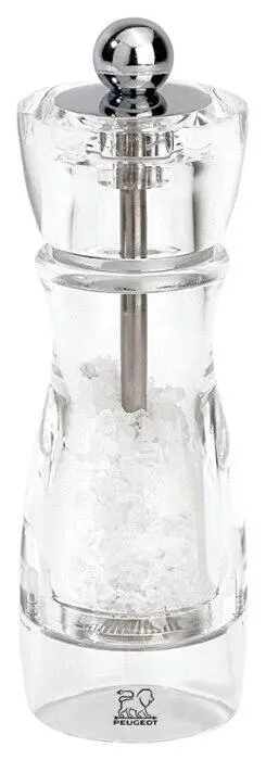 Die Salzmühle von PEUGEOT wurde zum Mahlen von grobem, trockenem Meersalz konzipiert. Hergestellt aus nichtrostendem Edelstahl ist das Mahlwerk vor Korrosion durch das Salz geschützt. Dies erhält die Schneidfähigkeit und garantiert eine lange Haltbarkeit der PEUGEOT Mühlen. Optimal arbeitet das Mahlwerk mit Salzkörnern mit einem Durchmesser von 4 mm.