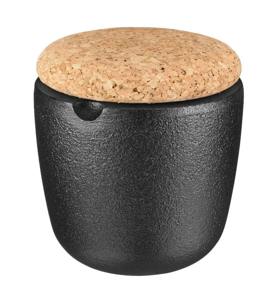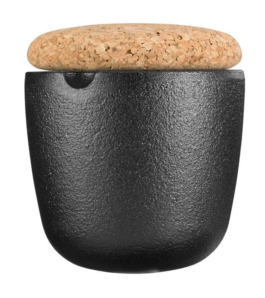 Skeppshult Salzbehälter Swing in walnuss. Die gusseiserne Kräuter- und Salzschale mit einem Deckel aus aus Kork.