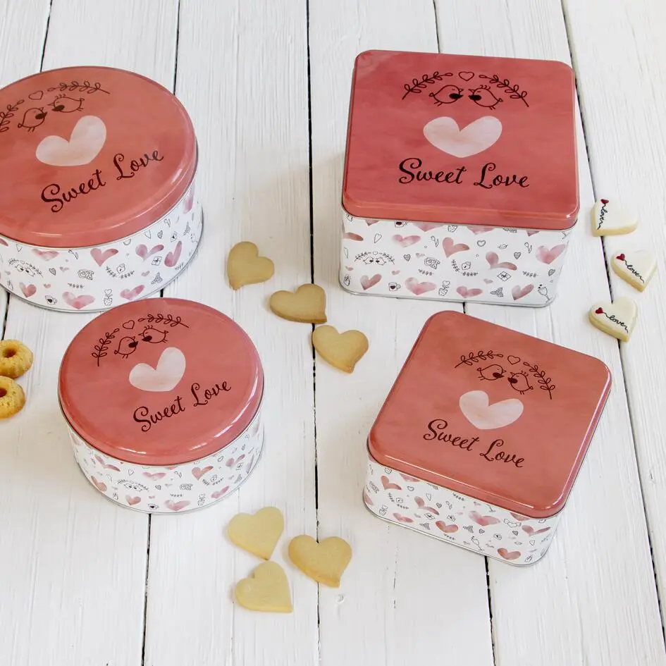 Die Gebäckdose aus der Design-Reihe „Sweet Love“ ist aus Weißblech gefertigt. Sie eignet sich zum Aufbewahren kleiner Kuchen oder Plätzchen, und zum Verschenken kleiner Aufmerksamkeiten.