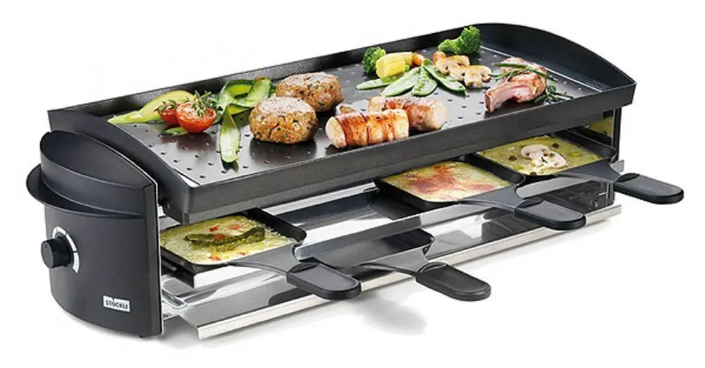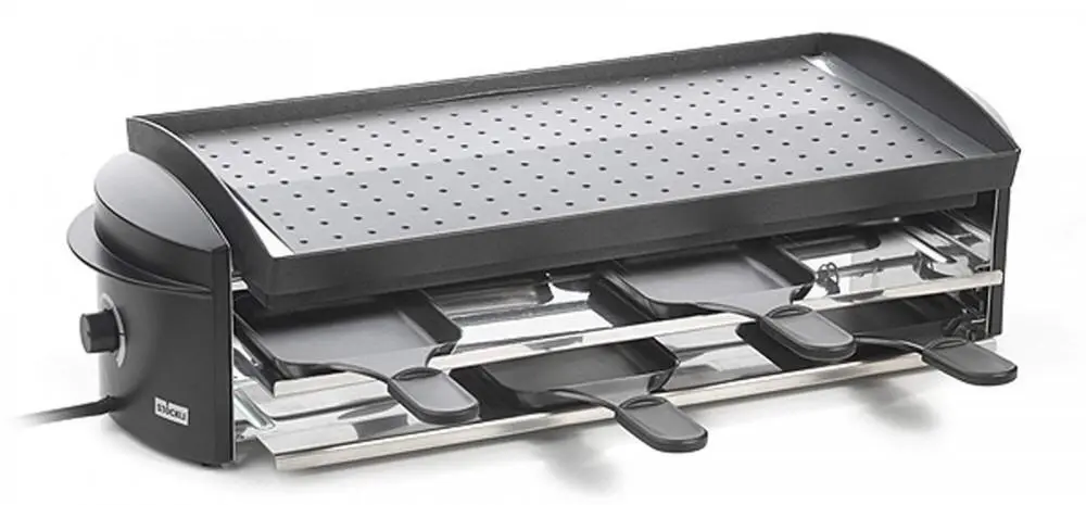 Stöckli Cheeseboard V8 Grill. Das Raclette- und Grillgerät für acht Personen. Mit leicht abfallender, antihaftversiegelter Grillplatte.