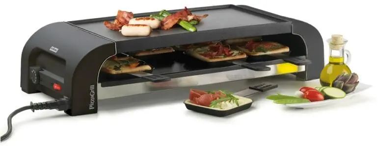Stöckli Kombinationsgerät PizzaGrill For8 gilt als Multitalent im Bereich ’Kochen am Tisch’. Egal ob für zur Zubereitung von Minipizzas, Raclette oder Grilladen. Der Vielfalt sind keine Grenzen gesetzt! Mit dem PizzaGrill lassen sich 8 Personen auf originelle Art verpflegen. Mit zuschaltbarer Unterhitze, regulierbarer Oberhitze, antihaftversiegelter Grillplatte aus Aluguss, 8 Pfännchen mit Antihaftversiegelung, 8 Kunststoffspachtel und Teigausstecher.