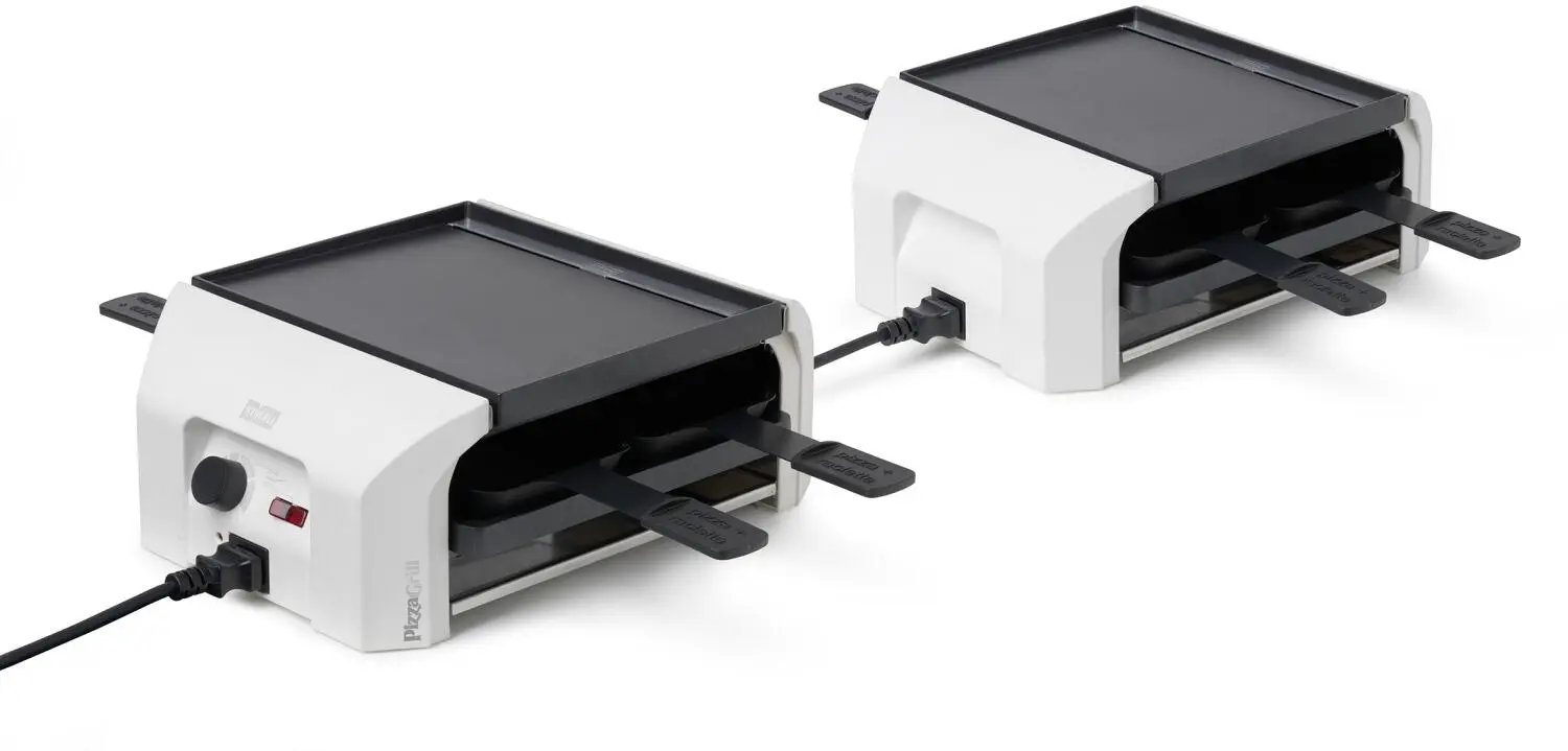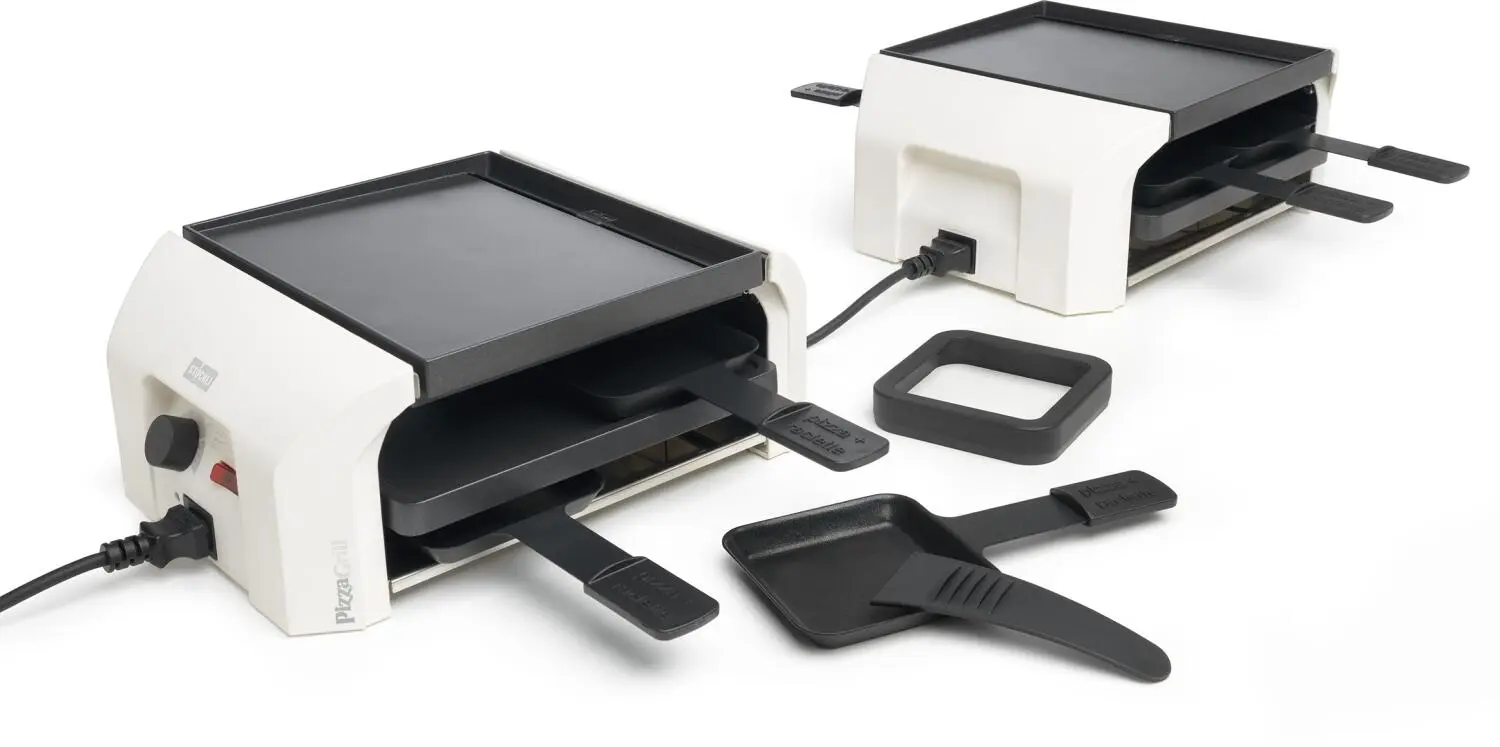 Stöckli PizzaGrill Four4, Set in weiß. Das multifunktionale Basisgerät und Endgerät für 8 Personen mit den Funktionen Pizza, Grill und Raclette.
