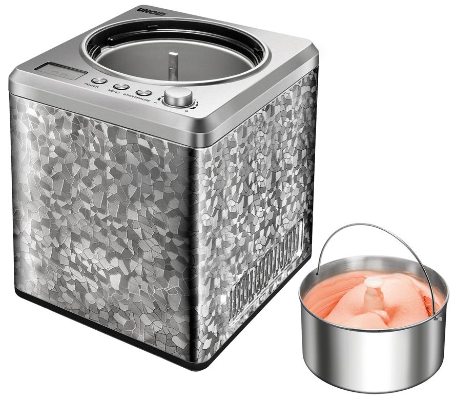 Unold Eismaschine Profi. FĂĽr die schnelle Zubereitung von bis zu 2 Litern Eiscreme. Eignet sich auch fĂĽr veganes, laktosefreies und steviahaltiges Eis.