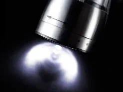 Die Pfeffermühle im schicken satinierten Look ist genauso zum Mahlen von Salz, anderen Gewürzen und Kräutern geeignet. Die Mahlqualität lässt sich von fein bis grob durch eine Skalierung einstellen. Praktischerweise lässt die Mühle sich mit einer Hand bedienen und verfügt über eine Beleuchtung, mithilfe derer exakt dosiert werden kann. Benötigt werden dafür 6 x AAA-Batterien, die nicht im Lieferumfang enthalten sind. Gefertigt ist das Gehäuse der Mühle aus Edelstahl, das Sichtfenster und der Fuß aus Kunststoff und das Mahlwerk aus Keramik.